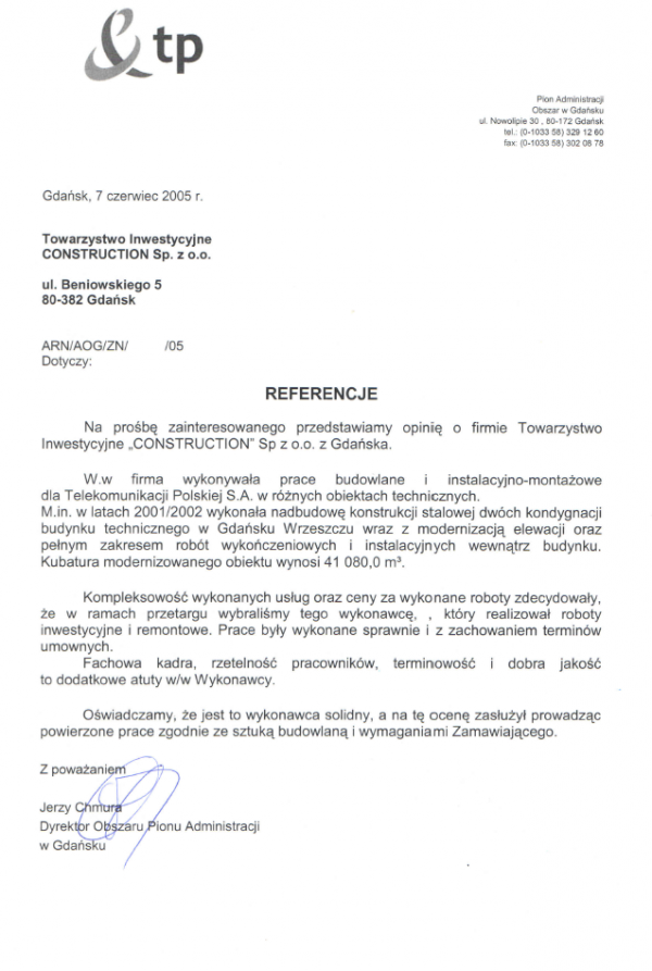 At the request of the interested party, we present our opinion about the company Towarzystwo Inwestycyjne "CONSTRUCTION" Sp z o.o. from Gdańsk.